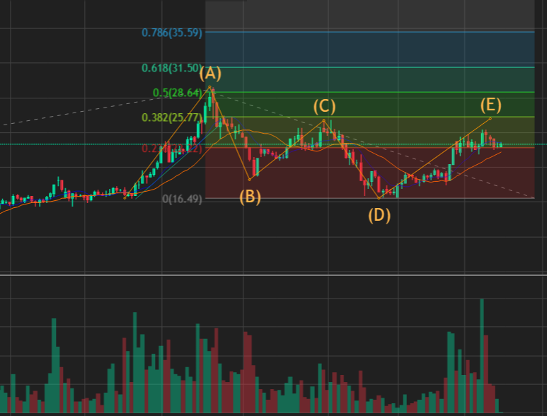 Em định vào 1 ít vùng hiện tại và vùng giá khi qua điểm E chút. Tại e nghĩ nó đang giống mô hình 2 đáy