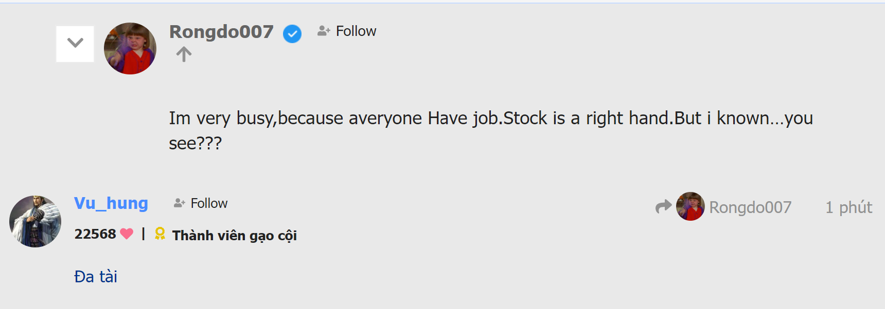 Im very busy,because averyone Have job.Stock is a right hand.But i known…you see???