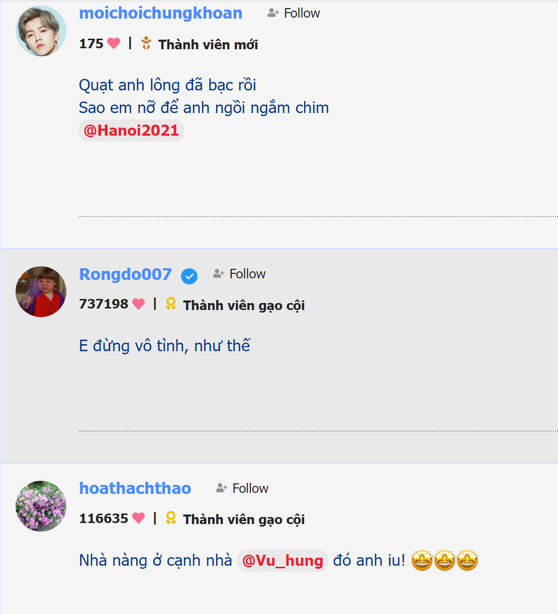 Hắn chỉ dám ngồi ghế, ko dám ngồi mâm 10 so tài. Nhà thì cùng quận với nàng, anh iu ạ