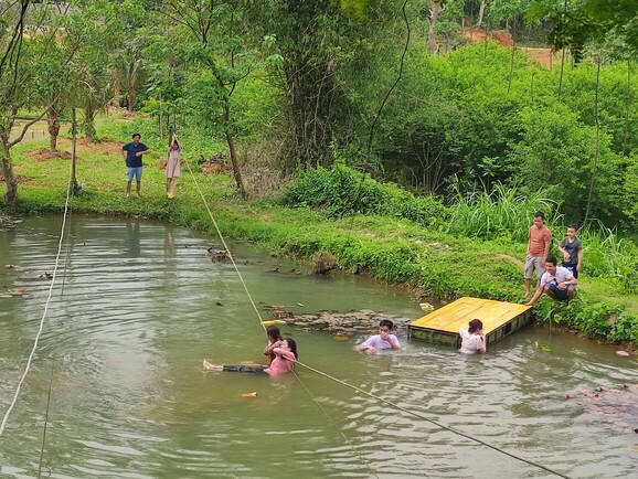 Anh cho các cháu đi cắm trại, thấy trò này hay, xuống cho các cháu nghịch và trải nghiệm. Đội thanh niên hí hửng theo sau thì ụp hết. Mấy đội đều như thế, chết cười.
