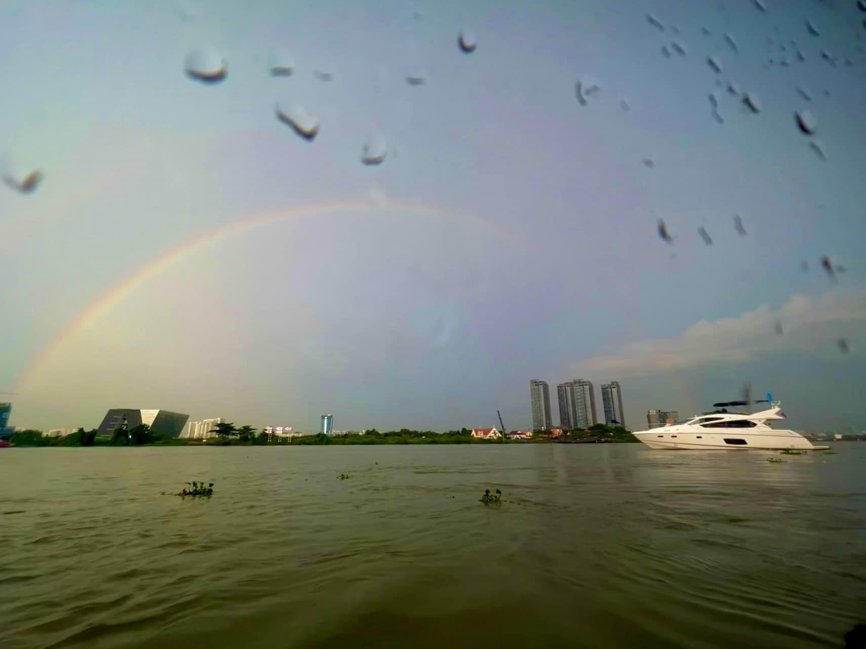 Ui hnay em bỏ lỡ, sau cơn mưa xối xả chiều nay, SG có cái cầu vồng to long lanh!