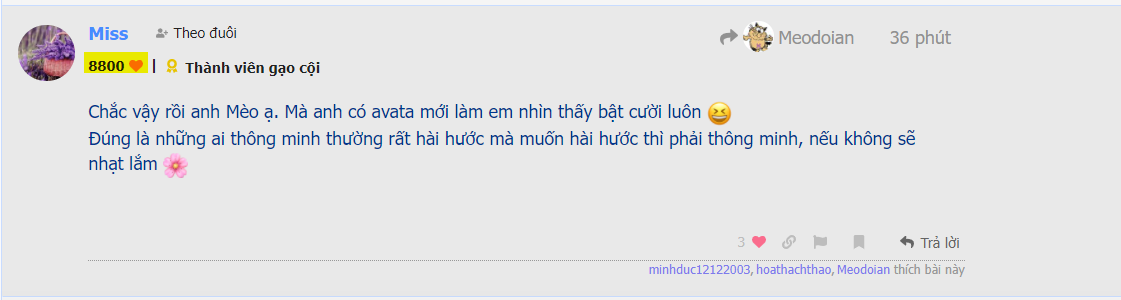 Chắc vậy rồi anh Mèo ạ. Mà anh có avata mới làm em nhìn thấy bật cười luôn