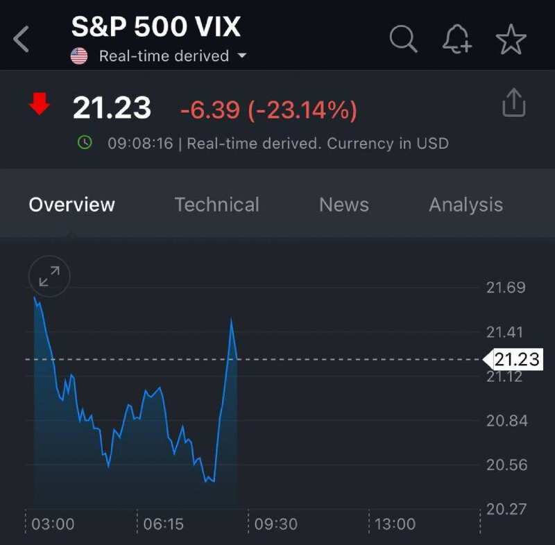 Chỉ số biến động $VIX giảm 23% khi làn sóng bán tháo hoảng loạn dường như đã lắng xuống.