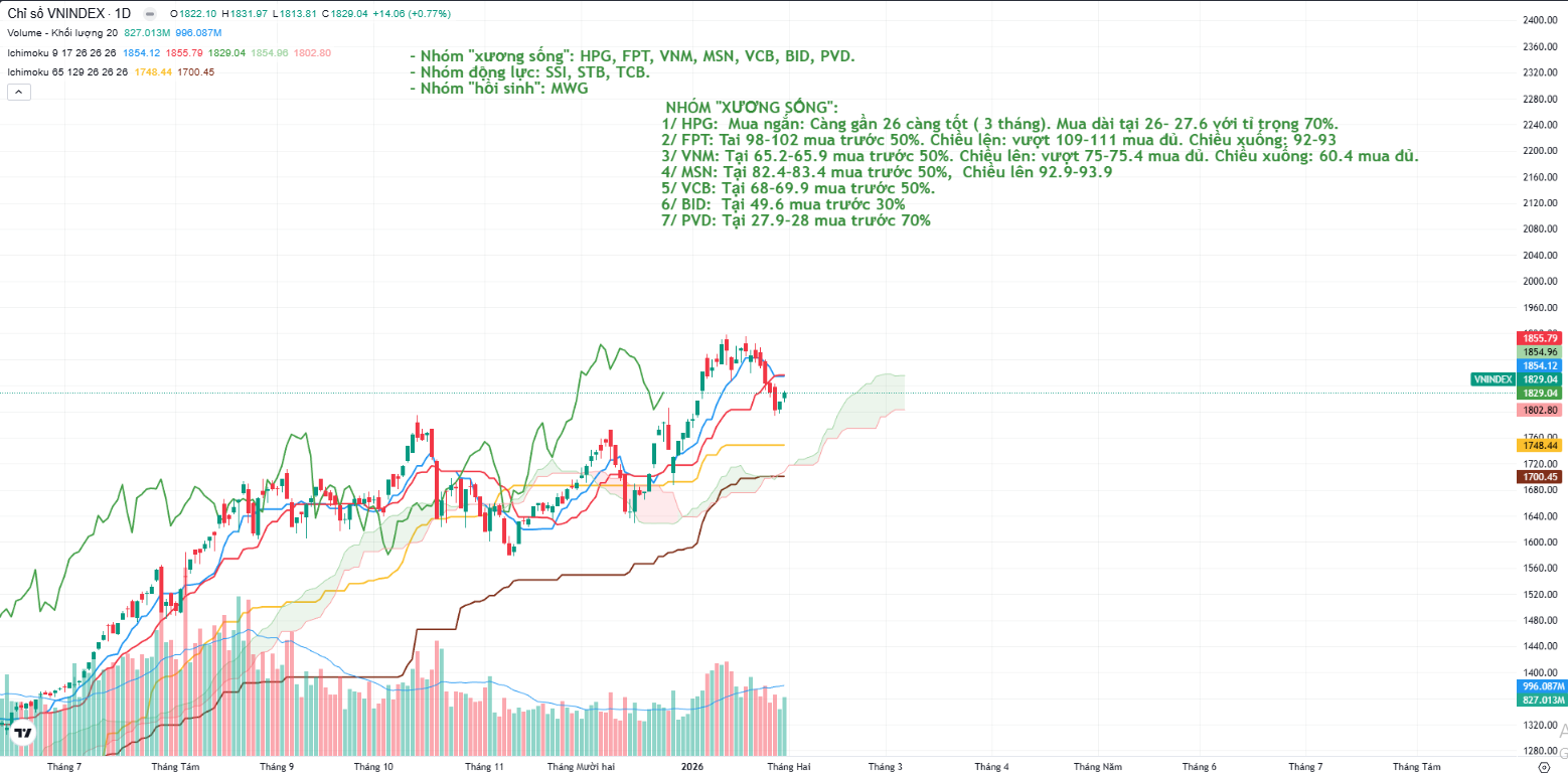 1/ HPG: Mua ngắn: Càng gần 26 càng tốt ( 3 tháng). Mua dài tại 26- 27.6 với tỉ trọng 70%.