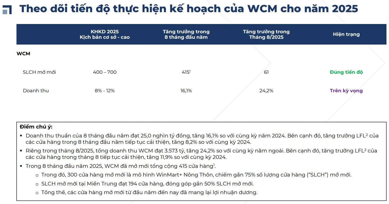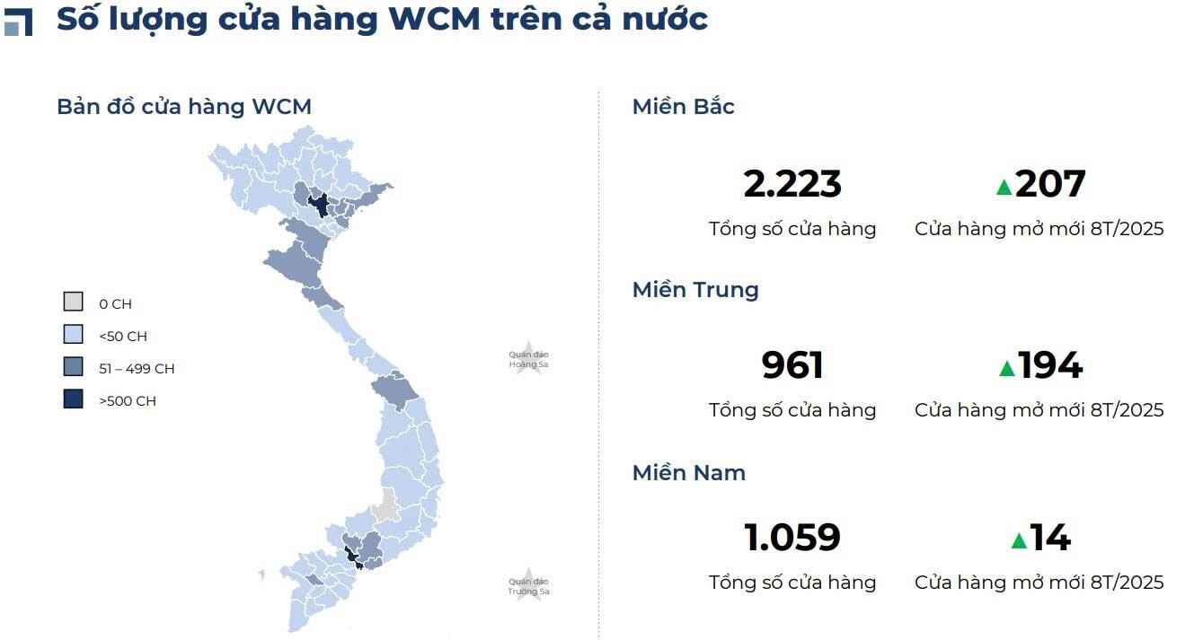 - Tính đến cuối quý 2/2025, WCM đã mở mới 318 cửa hàng, hoàn thành 80% mục tiêu cơ sở về mở mới trong năm.