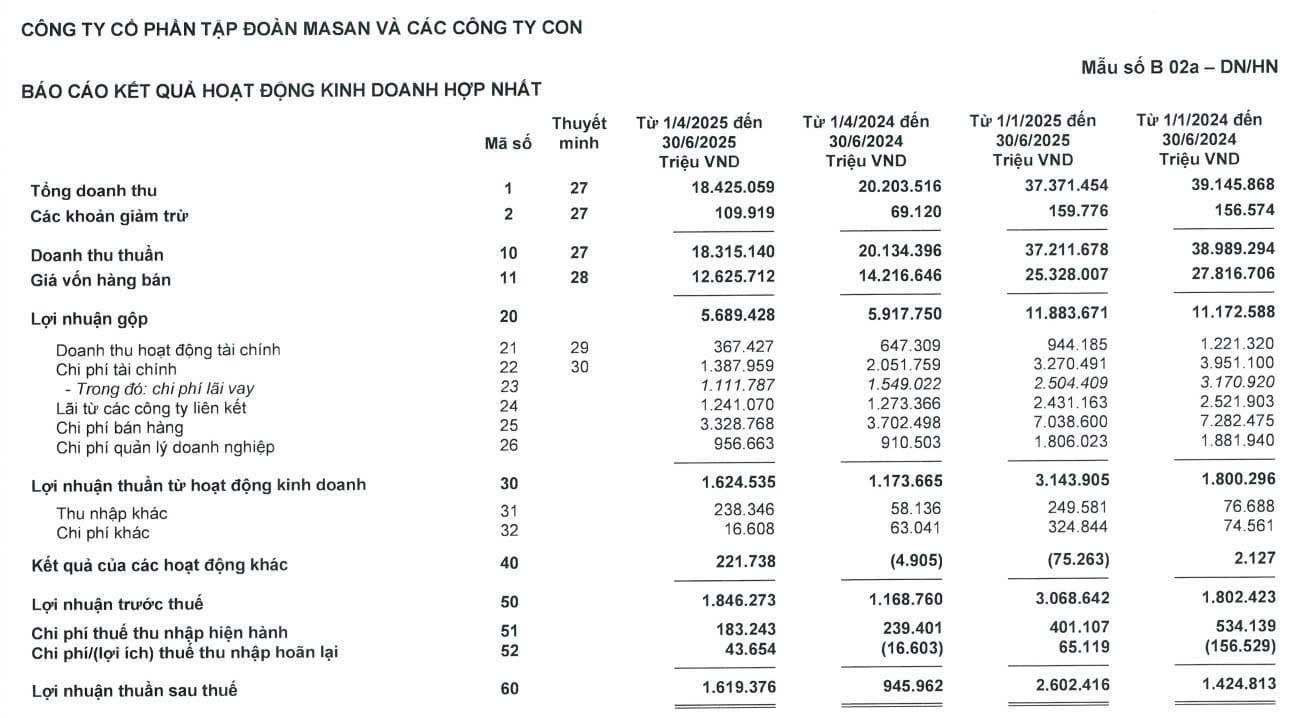 Cập nhật sơ BCTC Q2/2025 của MSN: