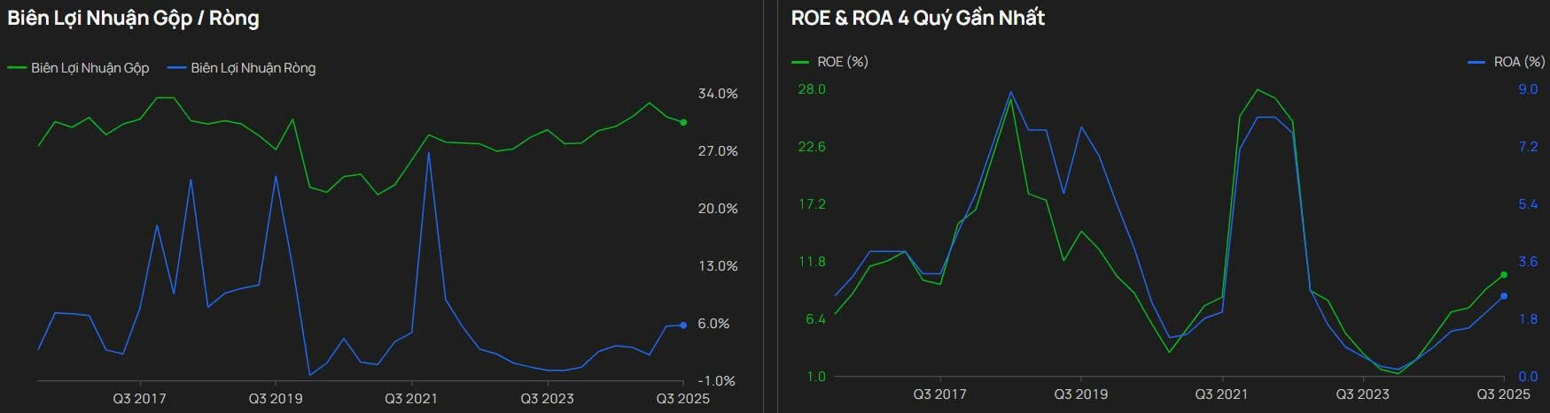 - Biên lợi nhuận gộp đạt 30,4%, giảm so với nửa đầu năm nhưng vẫn là mức cao nhất 6 năm. Biên lợi nhuận ròng tiếp tục cải thiện, đạt mức cao nhất 3 năm.