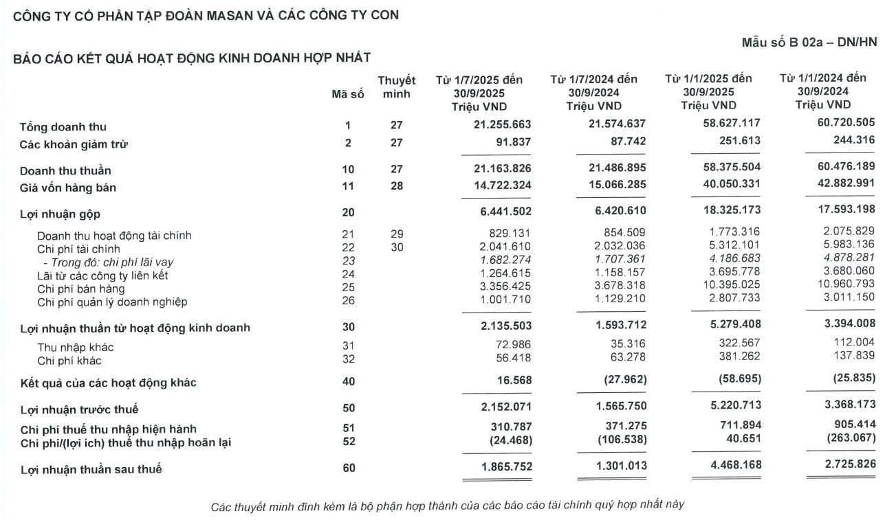 Cập nhật sơ BCTC Q3/2025 của MSN: