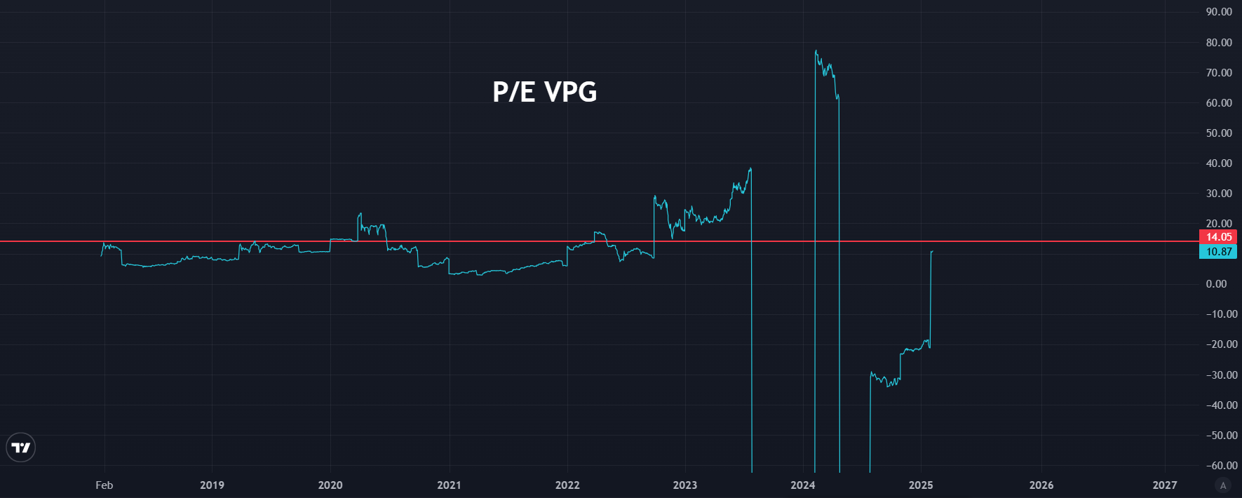 Mình lấy P/E trung bình của VPG trong quá khứ là quanh 14 nhân với EPS ở trên thì mức định giá kỳ vọng của VPG hết năm nay là 42k/cổ phiếu (dư địa x3,5 lần từ giá hiện tại).