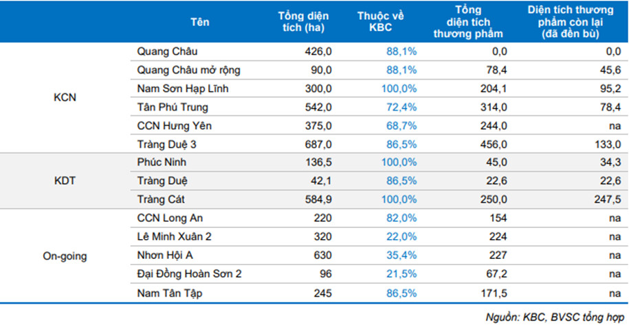 Tổng diện tích thương phẩm KCN còn lại là 352 ha. Giả định KBC cho thuê được 40% trong năm 2022 thì sẽ thu về được khoảng doanh thu: 3.238 tỷ đồng.