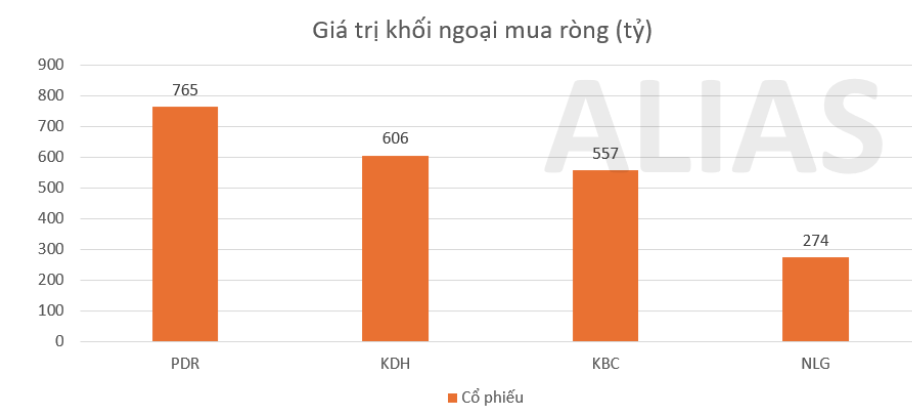 Nhóm cổ phiếu BĐS liên tục được khối ngoại mua ròng trong 1 năm qua.