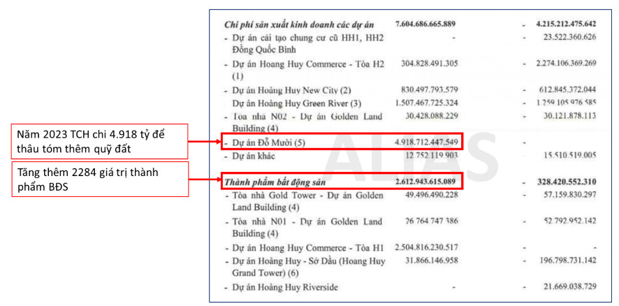 Đặc biệt nhất là TCH khi giá trị hàng tồn kho tăng từ 3.097 tỷ lên thành 10.658 tỷ, tăng gấp 3.44 lần so với đầu năm. Dự án trọng điểm của TCH trong giai đoạn 2024 trở đi là dự án Đỗ Mười (Thủy Nguyên – Hải Phòng) với tổng giá trị đầu tư khoảng 15.000 tỷ, trong đó 5000 tỷ là tiền trúng đấu giá đất.
