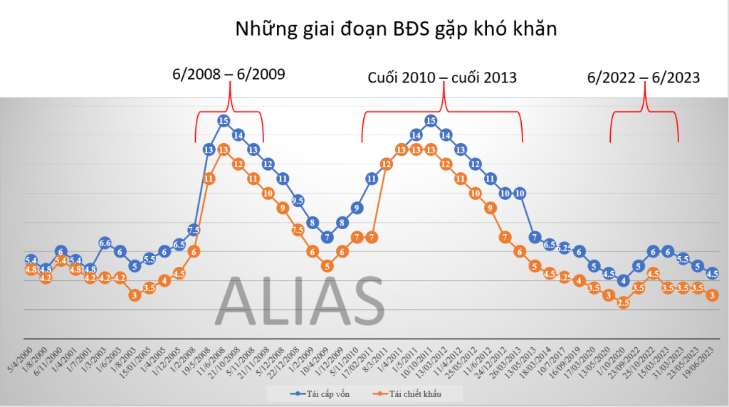 Những giai đoạn ngành BĐS gặp khó khăn đều gắn chặt với chu kỳ thắt chặt chính sách tiền tệ của NHNN. Khi mặt bằng lãi suất hạ nhiệt duy trì trong 1 thời gian đủ dài thì BĐS sẽ ấm trở lại. Đặc biệt các doanh nghiệp có quỹ đất ở khu vực trung tâm hoặc vùng ven các thành phố lớn sẽ là nhóm cổ phiếu dễ được hưởng lợi nhất.