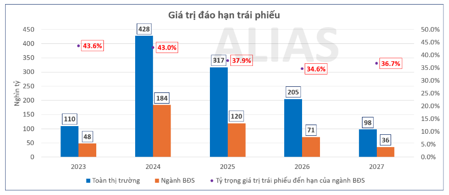 Năm 2024 có dư nợ đáo hạn trái phiếu với tổng giá trị 428 nghìn tỷ, trong đó riêng lĩnh vực BĐS chiếm 43%, tương ứng với 184 nghìn tỷ giá trị trái phiếu đến hạn trong năm nay. Đây cũng là năm có giá trị trái phiếu đáo hạn lớn nhất. Nhưng trái với suy nghĩ của nhiều NĐT, hầu hết các doanh nghiệp BĐS đều có tài chính khá tốt khi bước sang năm 2024.