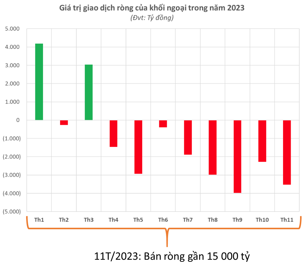 1. 11 tháng đầu năm KN đã bán ròng gần 15 000 tỷ