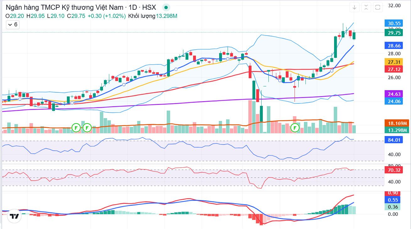 TCB hiện đang tích lũy quanh vùng 26.5–27.5 với tín hiệu hồi phục khá tích cực.