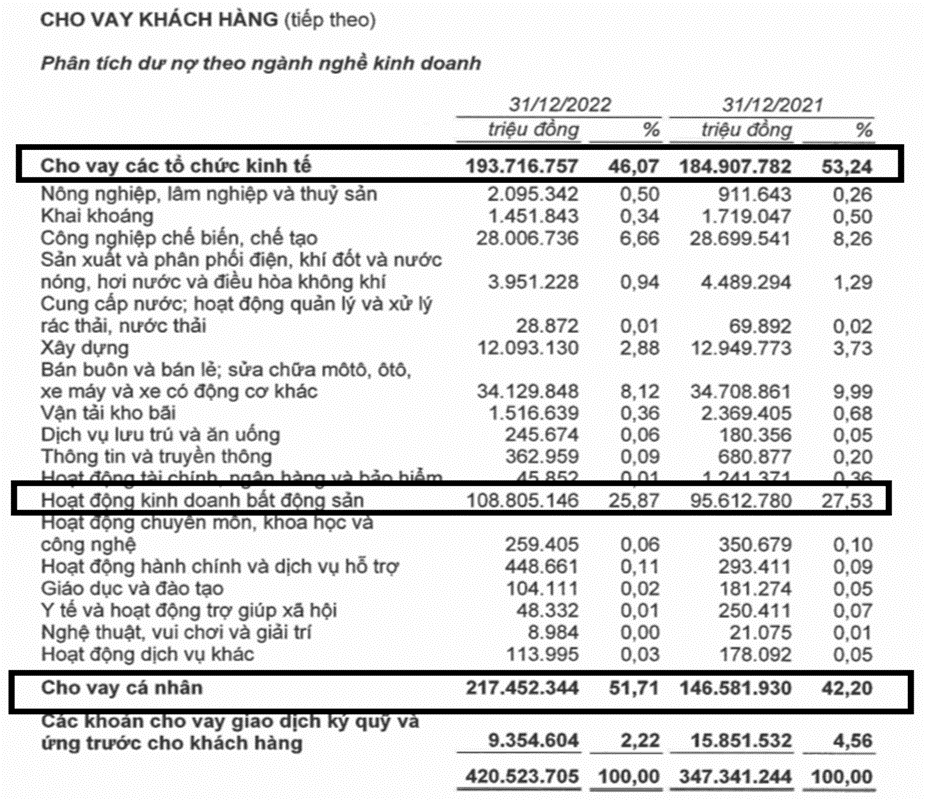- Về tỷ trọng dư nợ bđs hiện tại của techcombank lên đến hơn 50%