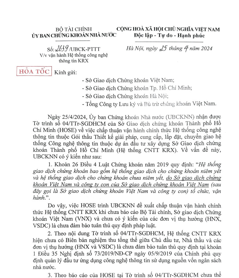 KRX ra tin chưa vận hành. Nên chứng giảm tiếp