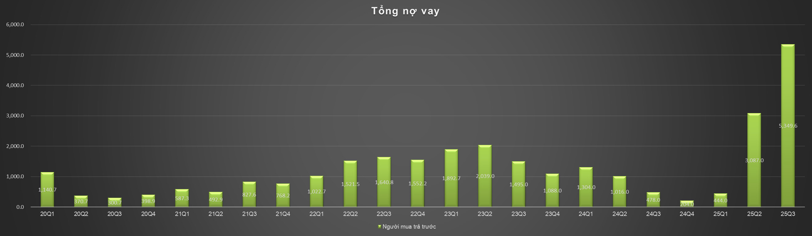 Lượng tiền người mua trả trước TCH tăng đột biến trong Q2 của năm tài chính (tương đương Q3.2025) tăng đột biến 2500 tỷ so với quý trước chứng tỏ các dự án của TCH đang mở bán rất thành công. TCH đang hút lại về lượng tiền mặt khổng lồ.