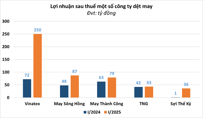 Một số công ty khác cũng ghi nhận kết quả tích cực trước khi có biến cố thuế quan. Sợi Thế Kỷ (Mã: STK) báo cáo lợi nhuận lên gần 36 tỷ đồng ở quý đầu năm, nhảy vọt so với con số 712 triệu đồng cùng kỳ năm ngoái.