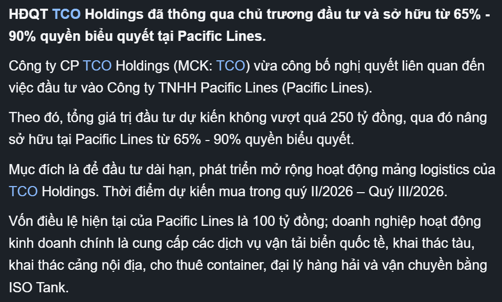 tăng thu nhập cho cổ đông TCO bằng cp khác