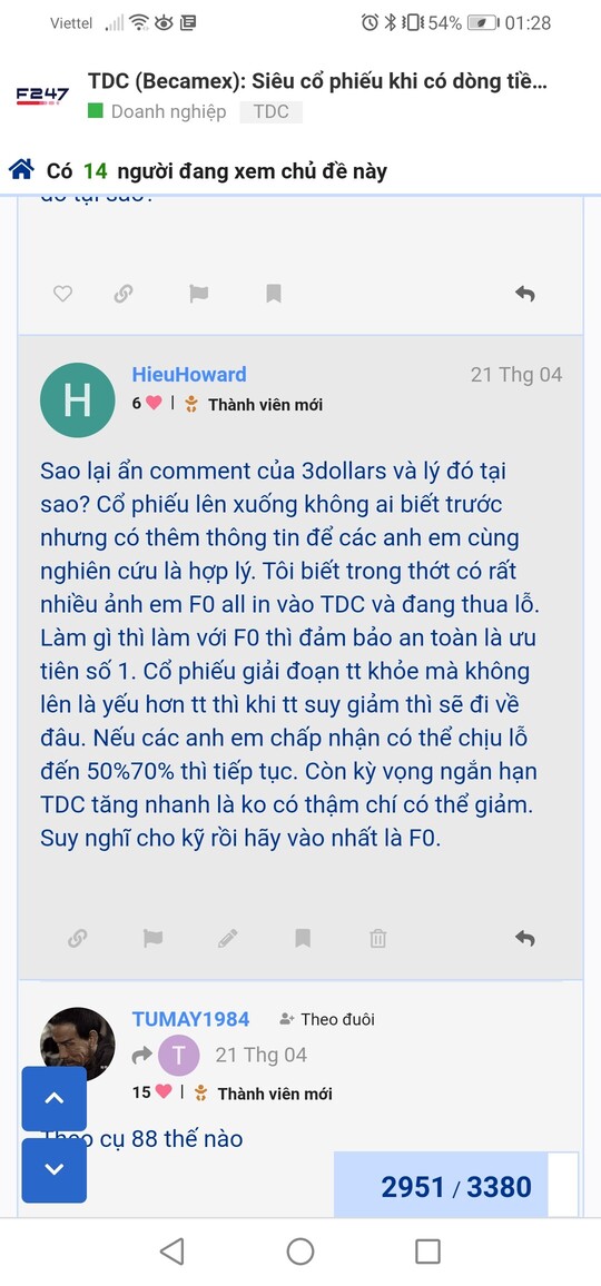 Anh em còn cầm TDC lỗ >10% rồi thì nên cân nhắc, tiền của mình thì tự biết quyết định. người khác có nhiều tiền, cầm nhiều mã, lỗ con TDC có con khác bù vào hoặc tiềm lực tài chính họ lớn. Họ chịu đựng được, họ là NĐT dài hạn. Còn nhỏ lẻ ko biết bảo toàn vốn thì chỉ có đứt, nếu nó giảm 50% thì TDC phải tăng 100% mới hòa vốn. Mình chia sẻ trên quan điểm cá nhân vì mình cũng từng bảo thủ, cũng fomo các cao thủ, các top, các gạo cội. Nhưng trải nghiệm rồi mới thấy, ko có gì là dễ dàng và miễn phí cả.