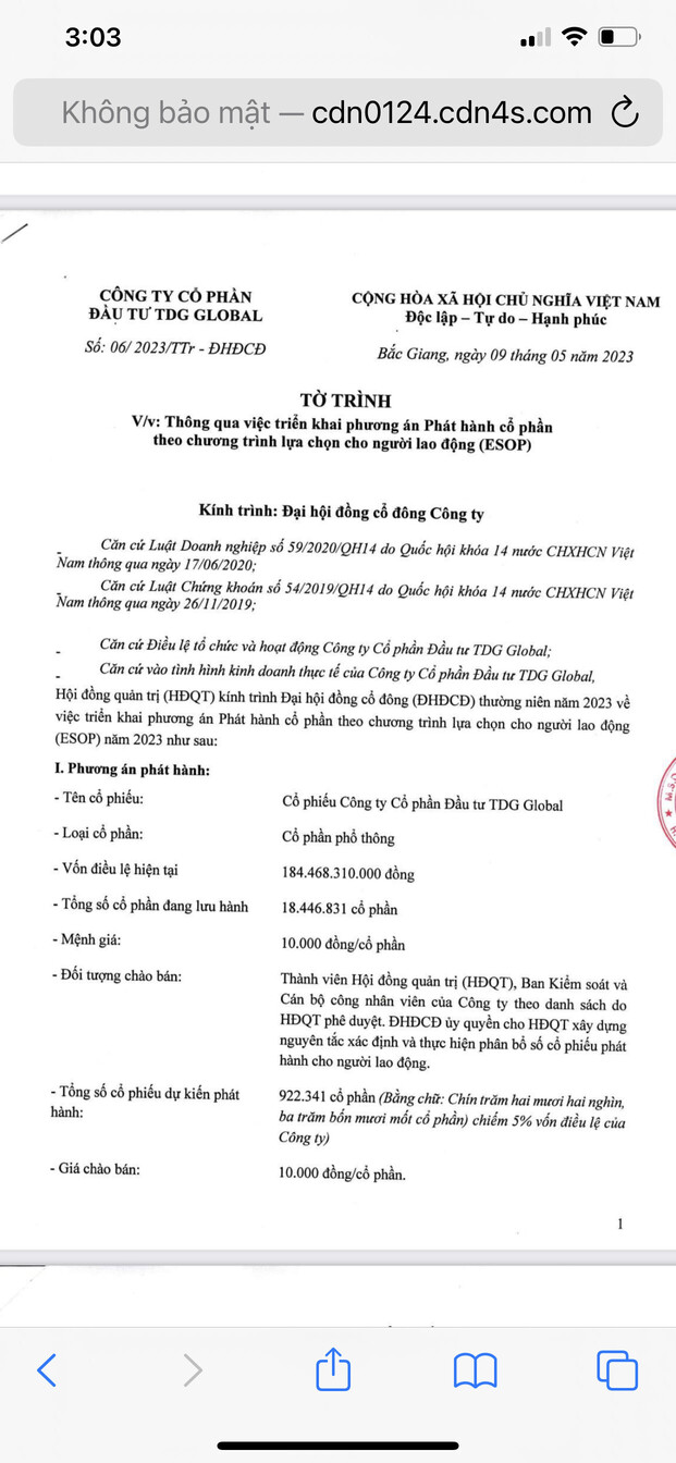 Tại Đại hội đồng cổ đông thường niên sắp tới của doanh nghiệp (dự kiến tổ chức vào tháng 6), TDG Global sẽ trình cổ đông thông qua phương án chào bán gần 6,46 triệu cổ phiếu theo phương thức chào bán riêng lẻ. Toàn bộ số tiền thu được gần 64,6 tỷ đồng sẽ được dùng để đầu tư dự án Cụm công nghiệp Bắc Sơn 2 nói trên. Thời gian thực hiện dự kiến trong nửa cuối năm nay.