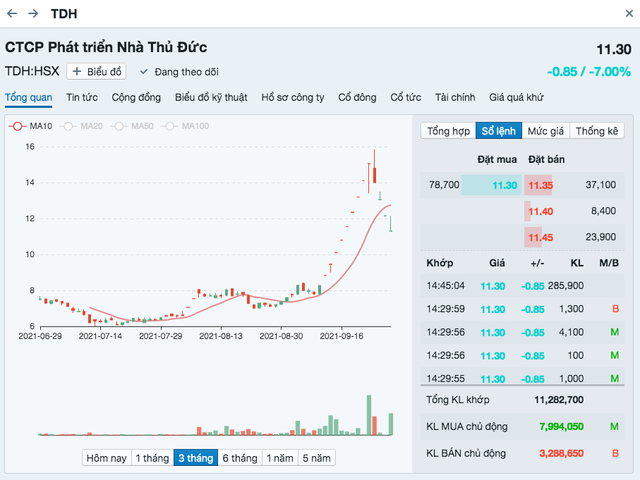 1/10/2021: Cổ phiếu TDH giảm sàn, Phó Tổng Giám đốc Nhà Thủ Đức thoái gần hết vốn