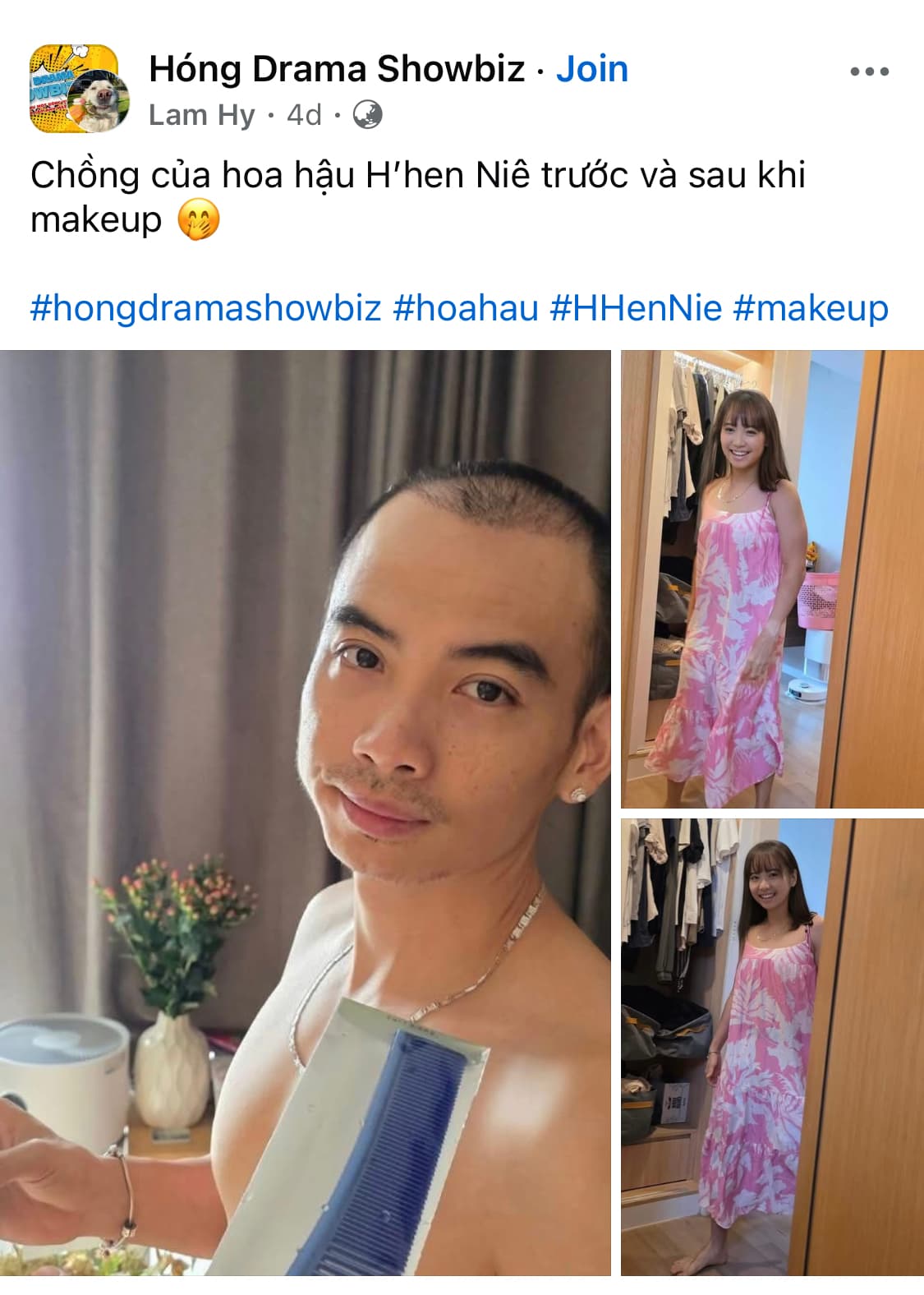 Ck hoa hậu H’Hen Niê á a. Bữa chọc chọc vk giả gái xong vk đăng fb. Mà công nhận giống thật