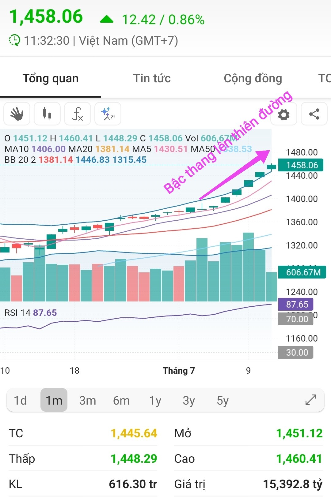 Thường hàng cơ bản, vốn hoá lớn, free float cao thì RSI 88 là đỉnh của chóp.
