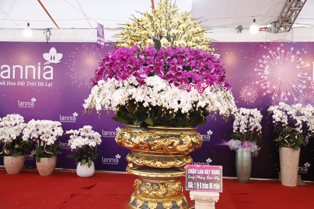 (Chậu hoa lan với gần 1000 cành hoa và dát vàng 24k được bày bán với giá hơn 1,6 tỷ đồng.)