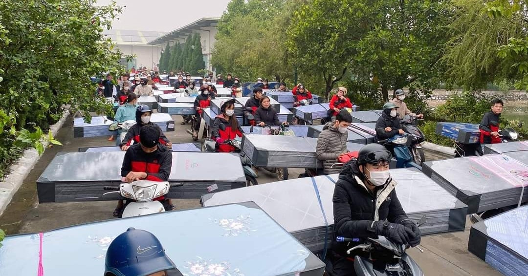 Ngoài thưởng Tết bằng 2 tháng lương, kèm túi quà, khoảng 13 nghìn cán bộ công nhân viên của Công ty May Sông Hồng Nam Định còn được tặng đệm bông nén dày 7 cm.