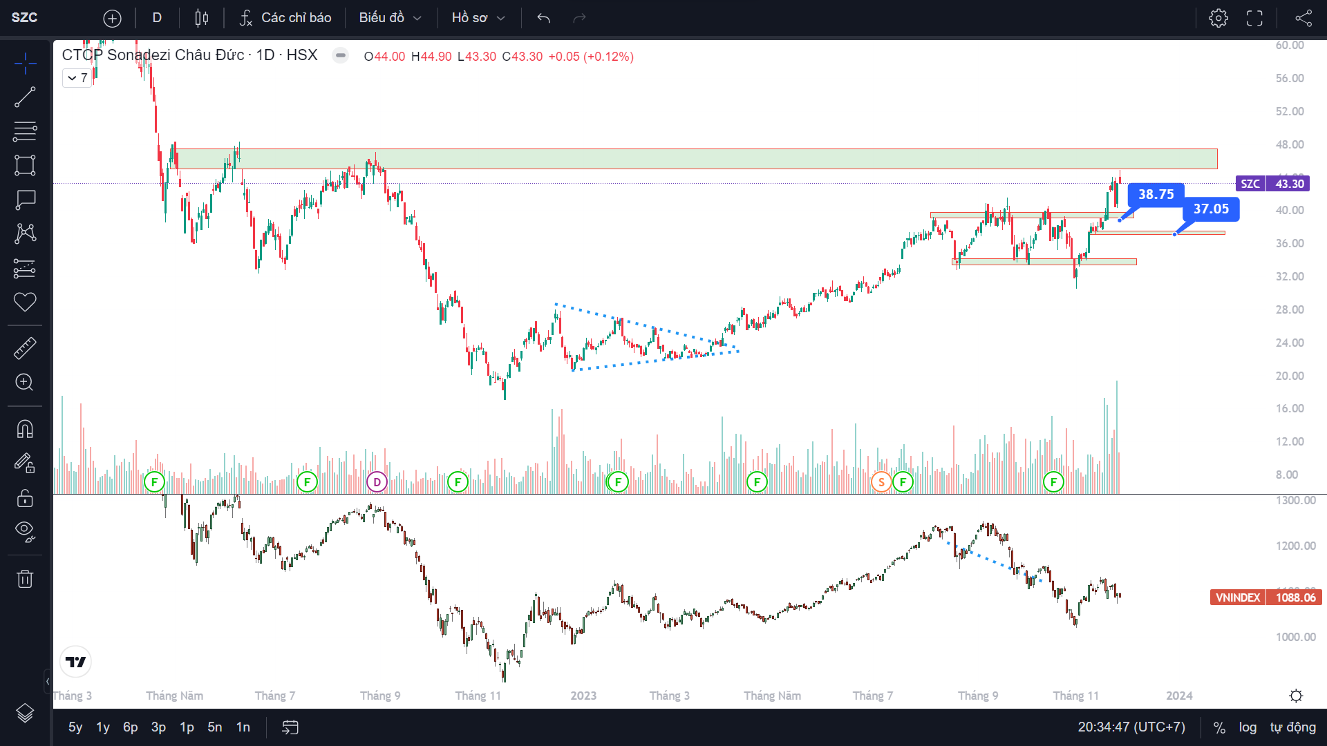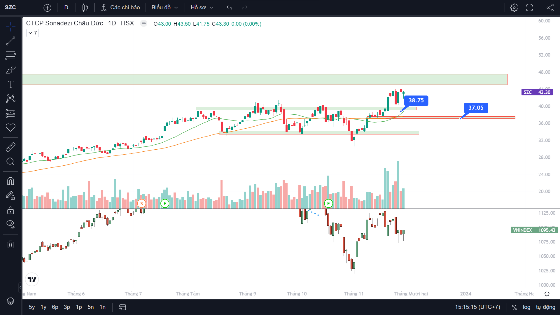 - Đẹp thì ở đây SZC tạo thêm 1 vùng BU với nến và vol siết lại trước khi bật tăng xác nhận bước vào trend. Vì phía trên đang là vùng kháng cự tuần thì lình xình tại quanh vùng này hấp thụ cung cũng hợp lý.