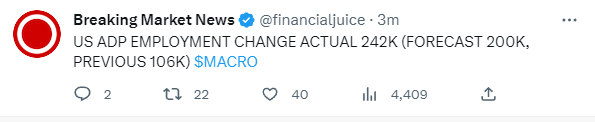 Dữ liệu việc làm tại Mỹ vừa công bố lúc 8h15, tốt hơn dự báo nha mọi người.