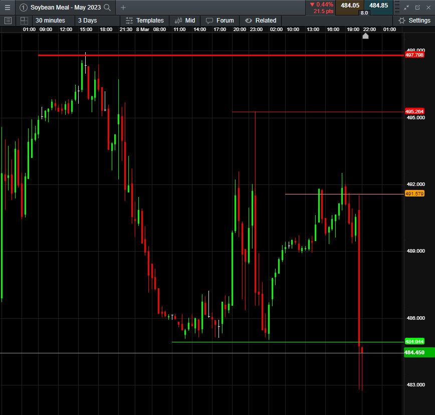 Ghi chú: với Khô đậu, biến động 1 giá cho 1 hợp đồng là $100, như vừa rồi mình short 491.5 TP 485, tức mình lời 6.5 giá * $100 * 1 hợp đồng = $650
