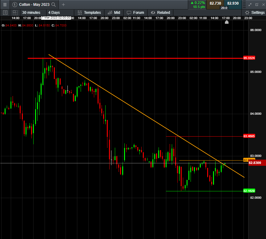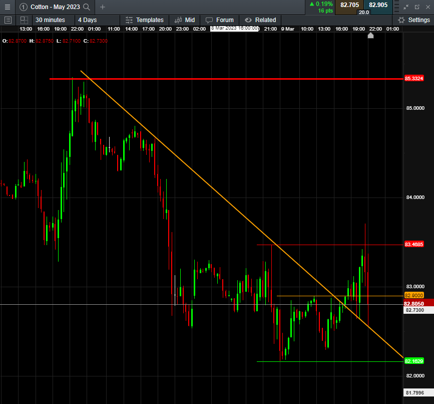 Ghi chú: với Cotton, biến động 1 giá là $500/hợp đồng, vd như vừa rồi, nếu mình short 1 hợp đồng với entry 82.9 và SL 83.5, vậy mình lỗ 0.6 giá * $500 * 1 hợp đồng = $300