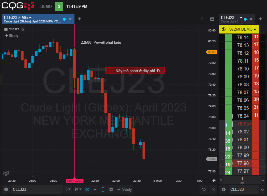 Nếu nãy khi bác Powell phát biểu, nhìn DXY tăng rồi dầu thô nó lủng 80, sau đó dầu hồi về 79.6-79.7 mà bác nào vào short thì chu choa