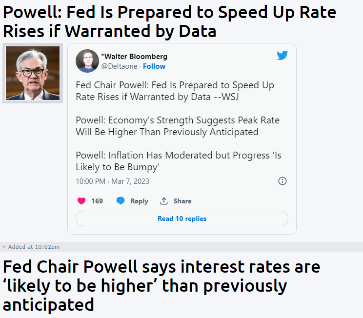 “The latest economic data have come in stronger than expected, which suggests that the ultimate level of interest rates is likely to be higher than previously anticipated.”