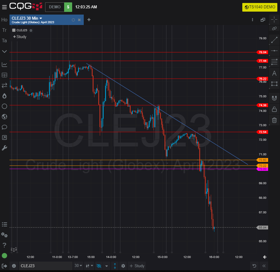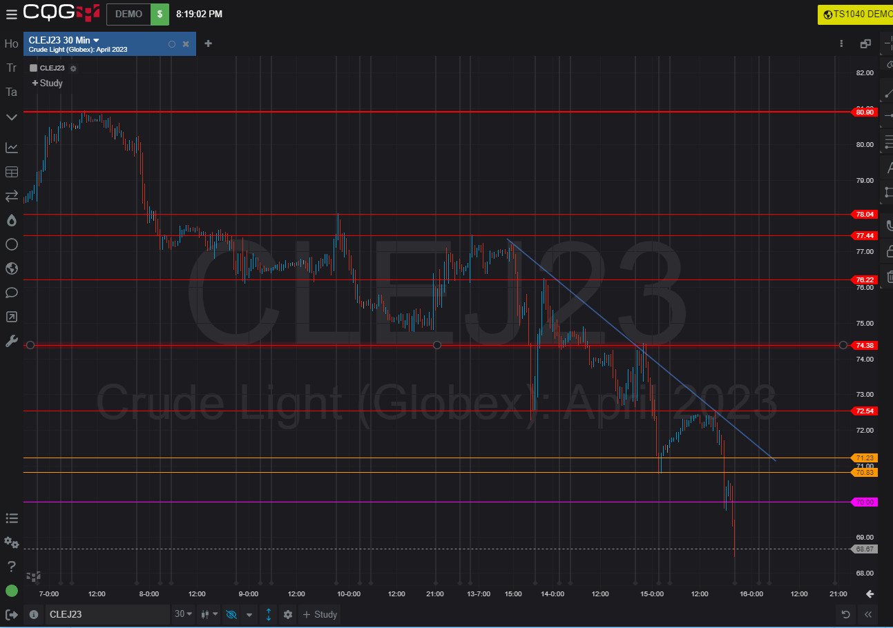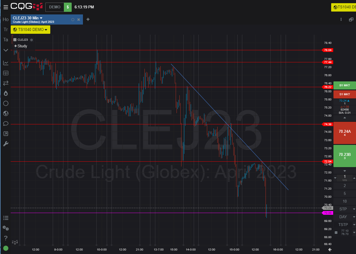 Dầu đang tiếp tục xu hướng giảm rõ nét, hướng về mốc số tròn 70, vùng kháng cự xếp tầng tầng lớp lớp phía trên và gần nhất là 74.4