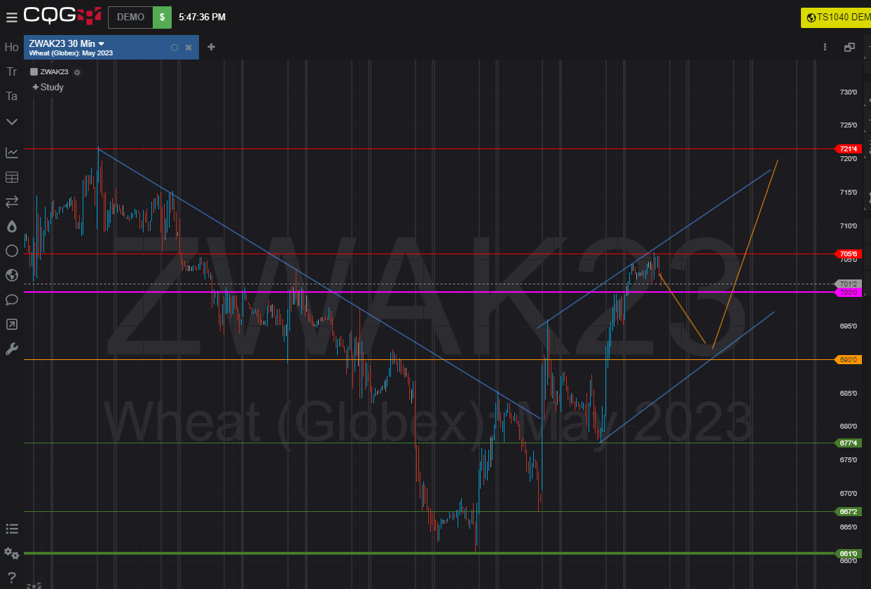 Lúa mì đang hình thành 1 trend tăng, giá đang loanh quanh ngưỡng tâm lý 700, mình vẽ dơi vẽ chuột thử xem khả năng bói toán đến đâu, theo đó, có thể canh mua quanh 690 với TP 720 và SL 675, cha cha