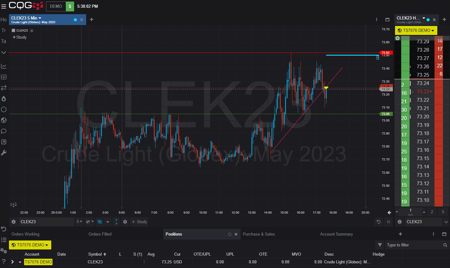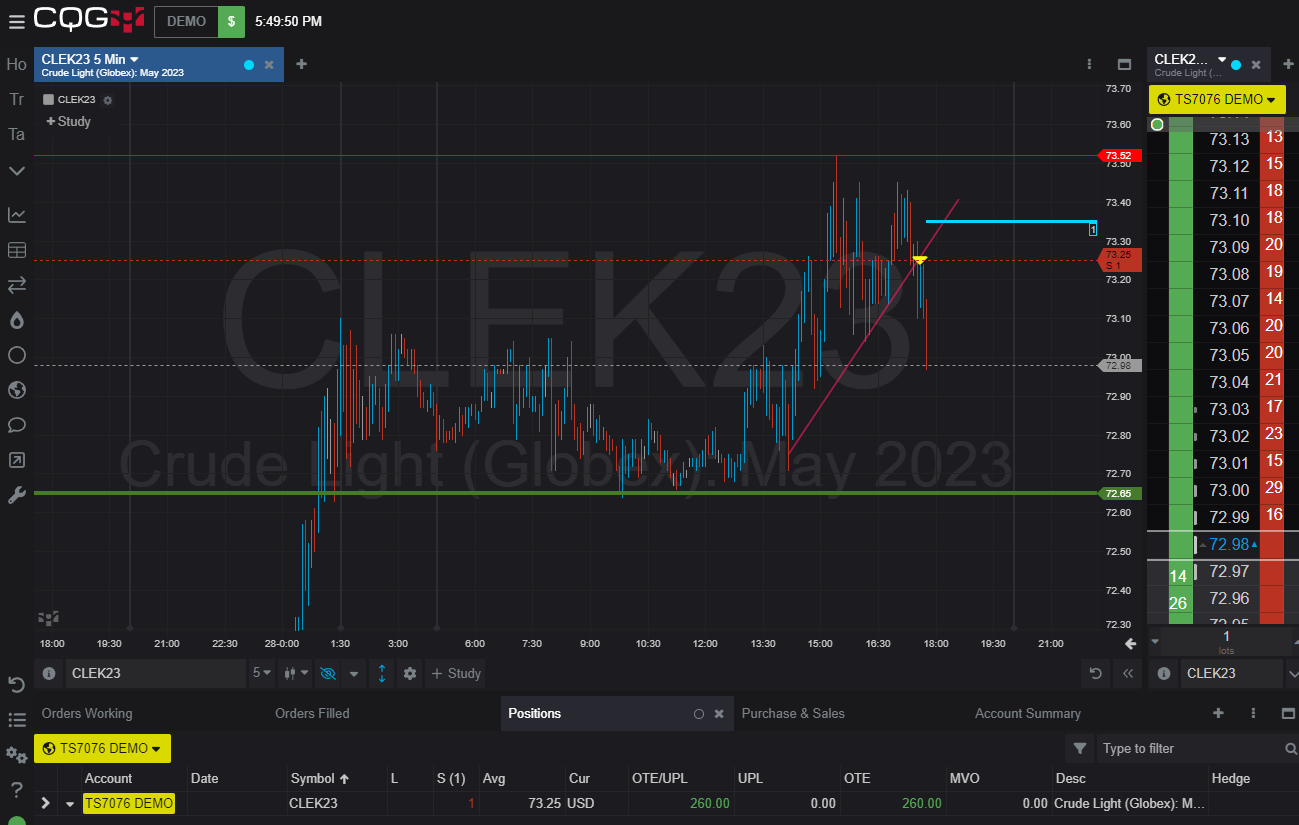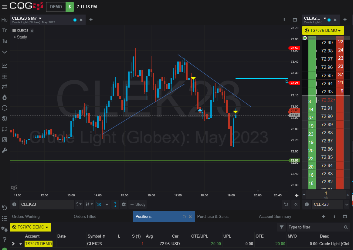 Đóng lệnh 72.97, trừ đi phí giao dịch 3 cent, chúng ta lời 0.25 giá