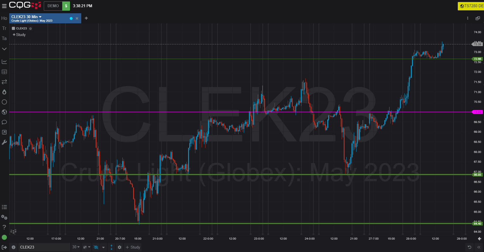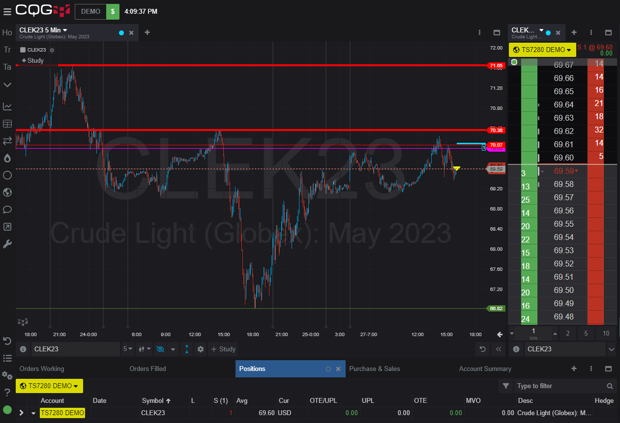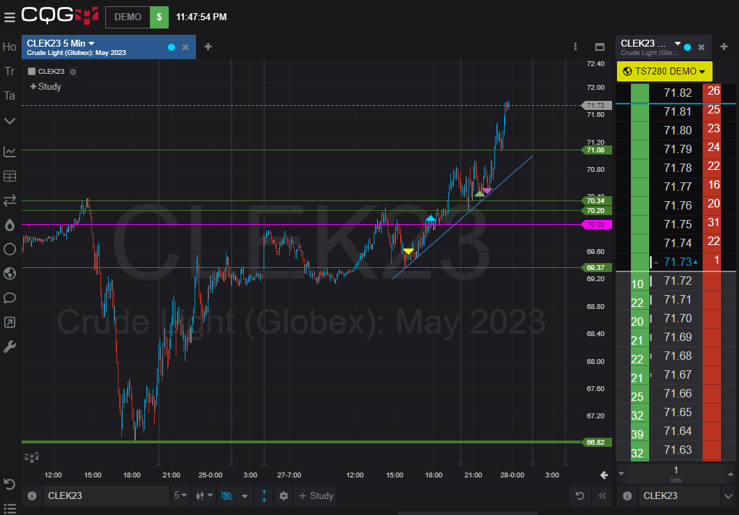 Đóng lệnh 72.97, trừ đi phí giao dịch 3 cent, chúng ta lời 0.25 giá
