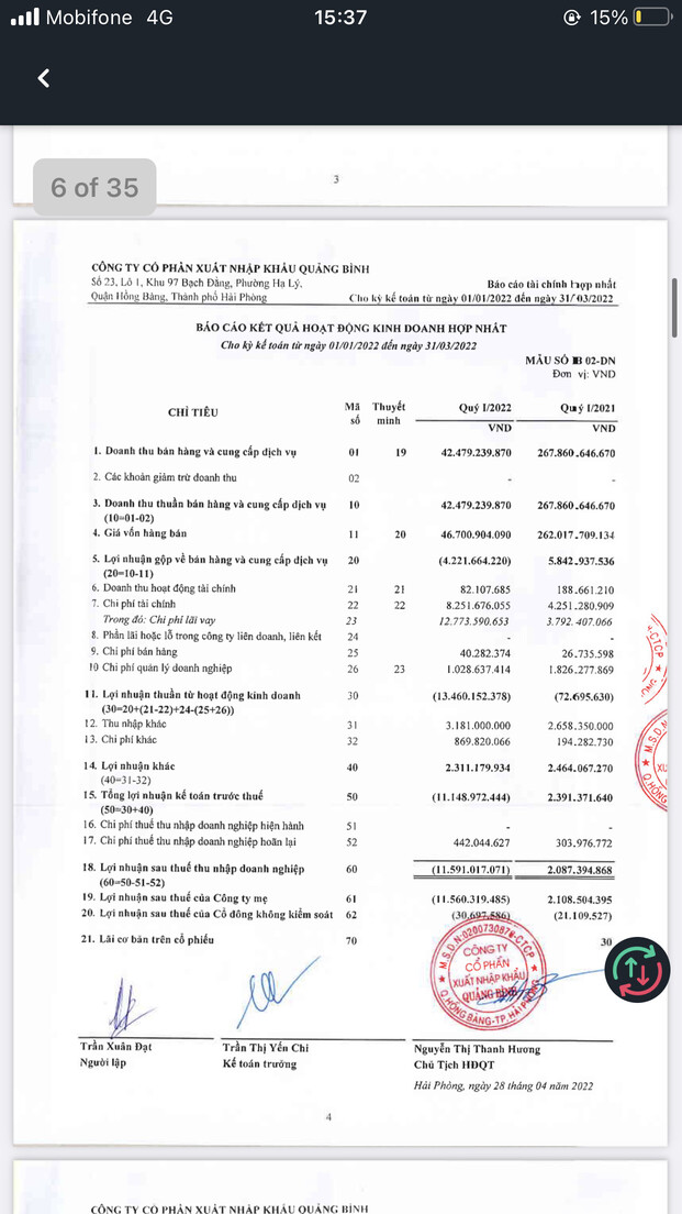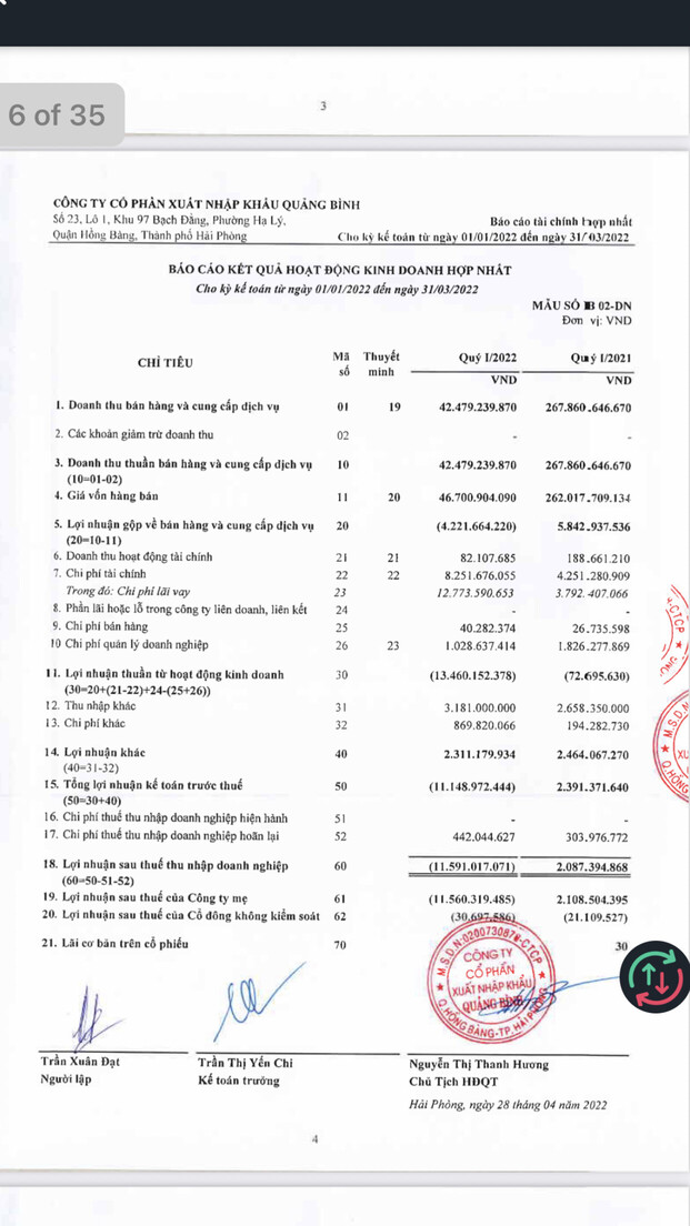 doanh thu bao tỷ? âm vốn csh bao nhiêu