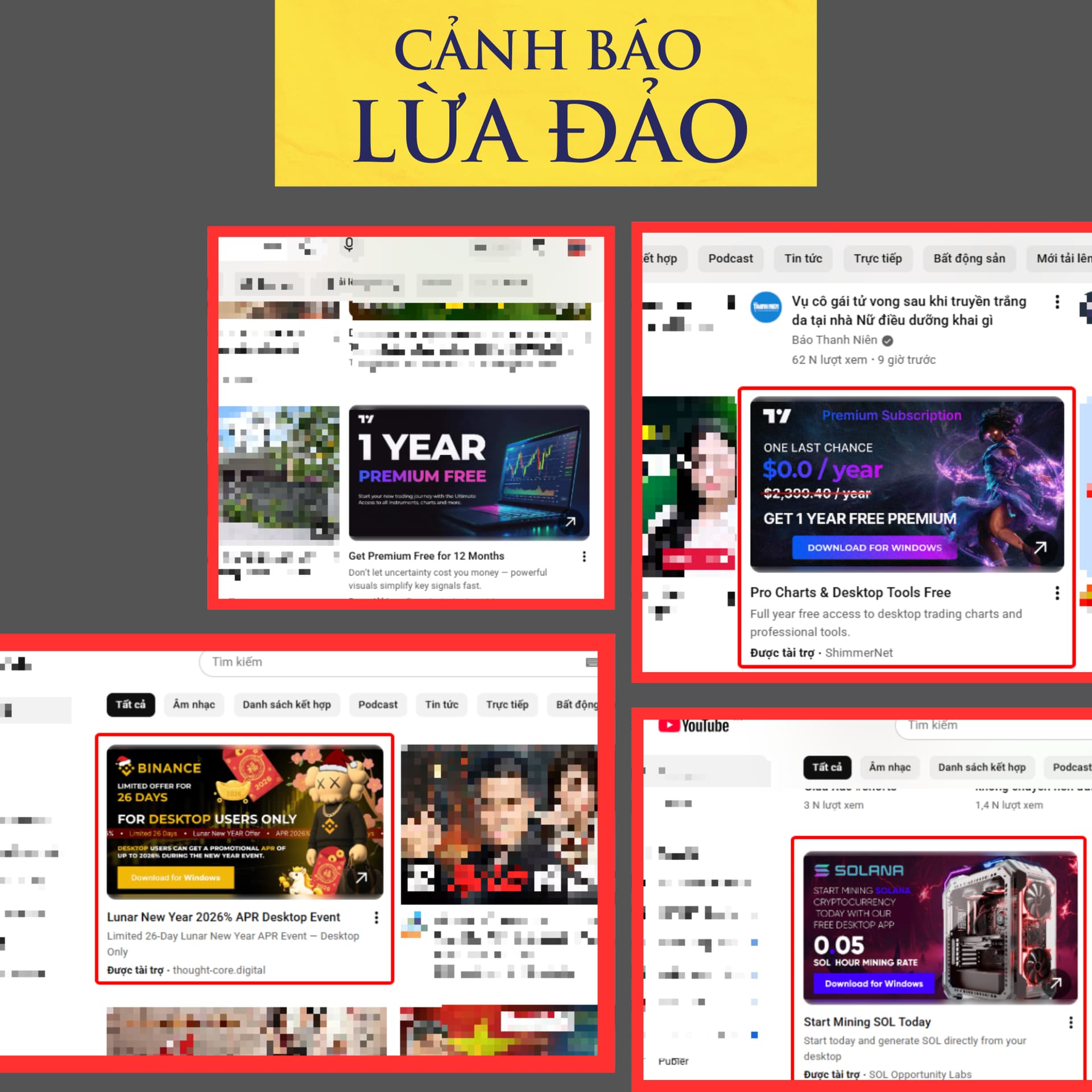 Nếu thấy mấy quảng cáo trên trang web phim youtube và facebook kiểu này ( tặng 1 năm xài miễn phí dịch vụ mạo danh các thương hiệu lớn,tặng tiền vào tài khoản,…) thì 100% lừa hack tài khoản.