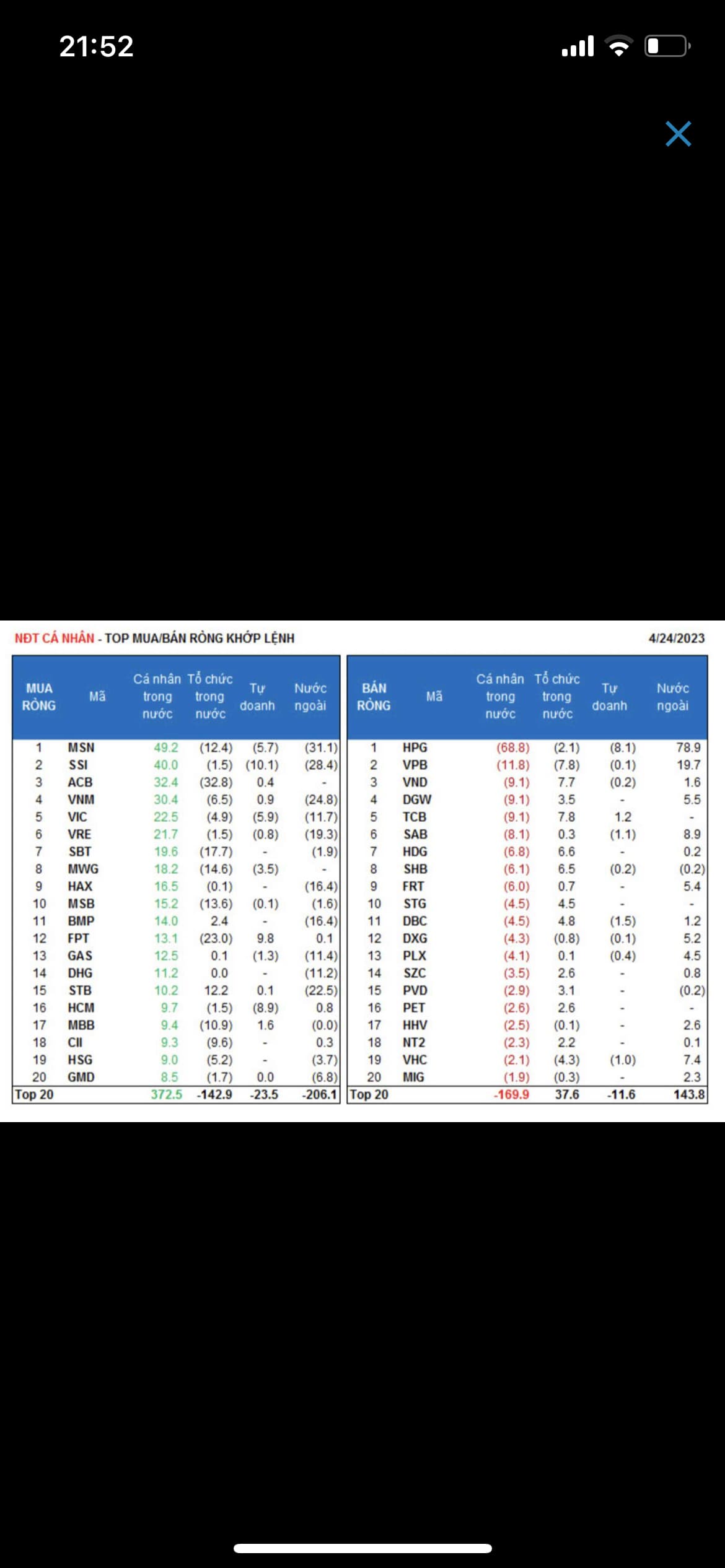 Gửi mng thống kê phiên nay
