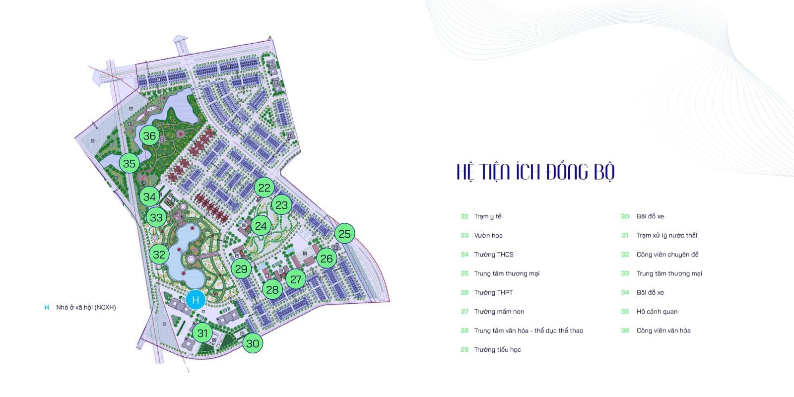 Sản phẩm: 594 căn nhà ở thấp tầng (267 căn Shophouse & 325 căn Liền kề), 2 tòa căn hộ cao cấp cao 30 tầng với gần 600 căn hộ.