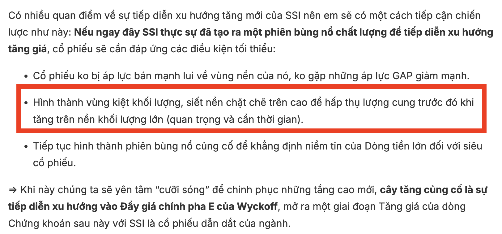 => Nguyên nhân Tích Luỹ sẽ dẫn đến Kết quả Tăng giá: đây là 1 trong 3 quy luật nền tảng của Wyckoff. Thấy được vẻ đẹp của Tích luỹ cũng chính là lúc chúng ta đã sẵn sàng để đón nhận trọn vẹn Uptrend.