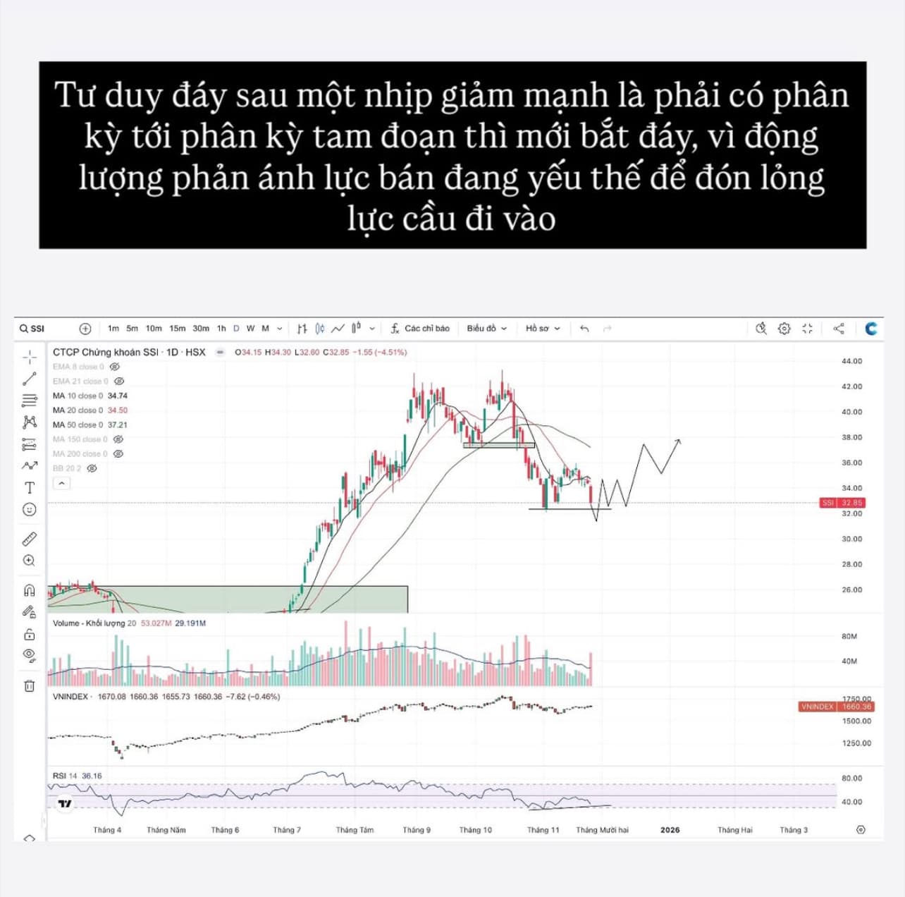 Hãy chú ý, tt này chưa có đáy, để hình thành đáy và lộ ra siêu cp thì dần 1 cú rung lắc để dòng tiền đầu cơ kiểm định sức mạnh của cp, khi tt ko có 1 biến cố đủ lớn sẽ ko kích hoạt được dòng chảy tiền mạnh mẽ, điển hìnhn dù SSI thủng đáy nhưng sau đó ko có lực cầu đủ mạnh