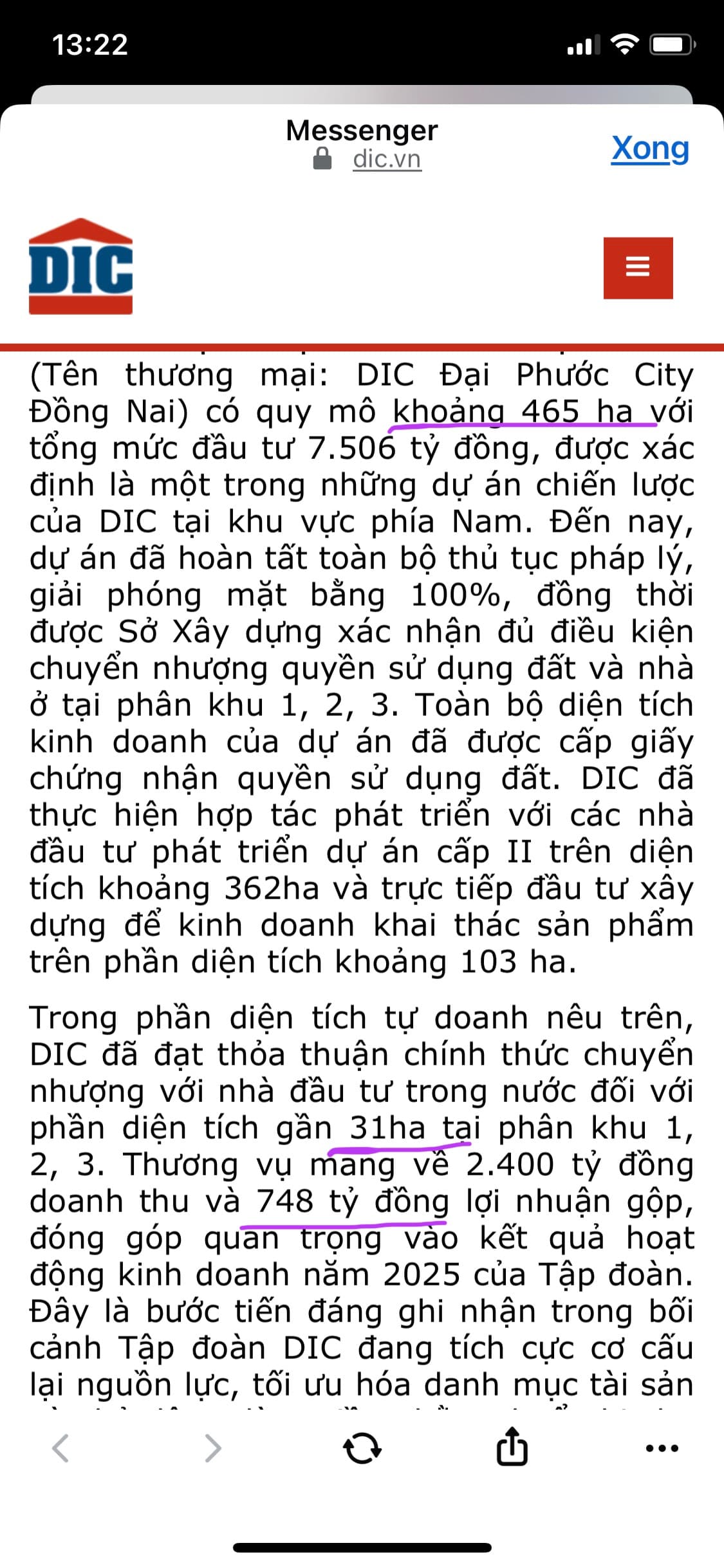 DIG vừa bán 31ha dự án Đại Phước đã thu về 2400 tỷ và lãi 748 tỷ hạch toán trong quý 4 này. Vậy với tổng 465ha gấp 15 lần thì DIG thu về 36k tỷ gấp 3.5 lần vốn hoá cả công ty trên sàn. Chưa kể các siêu dự án khác đã đầy đủ pháp lý là Long Tân, Hậu Giang, Cần Thơ, Bắc Vũng Tàu,…