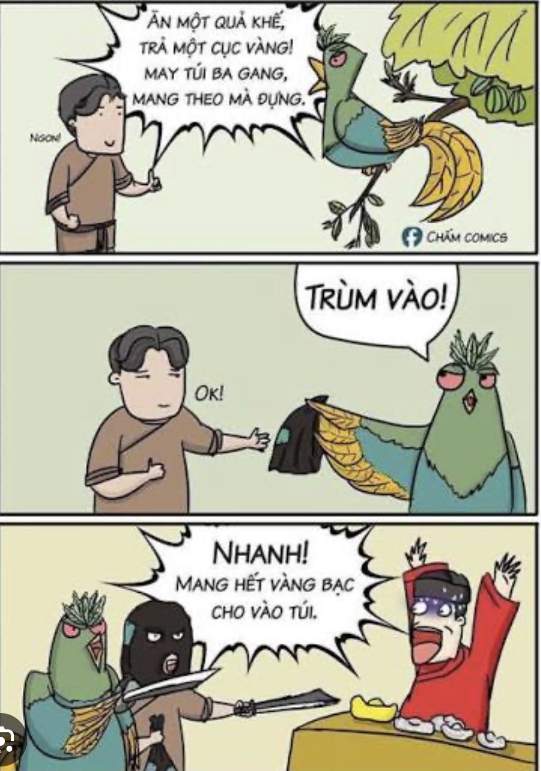Tớ còn hỏi 1 câu này nữa: Sao vàng đó bán có lời, không đưa tiền lời,.